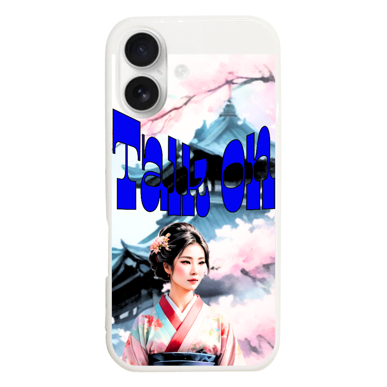 和服女性と桜、そしてお寺などのコラージュ画像です。