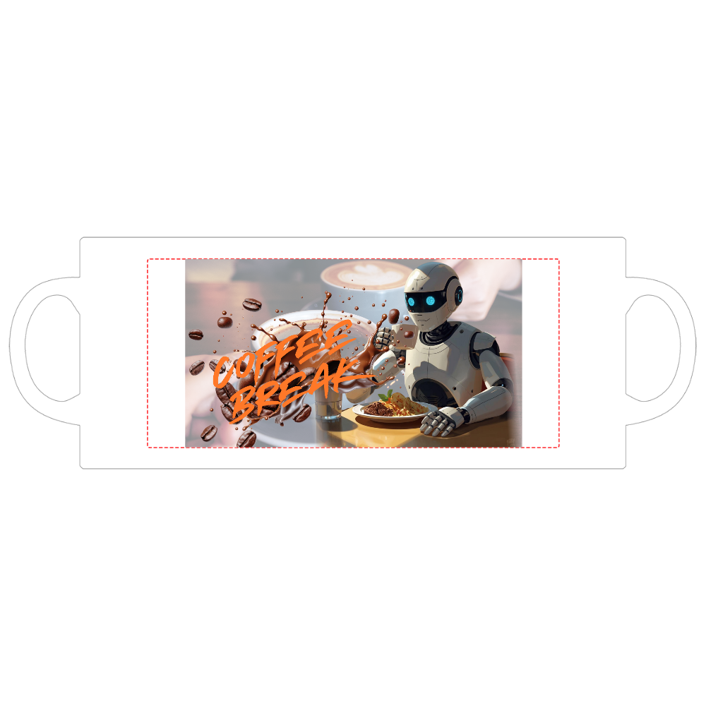 ロボットがコーヒーを楽しんでいるイメージの画像をデザインしました。