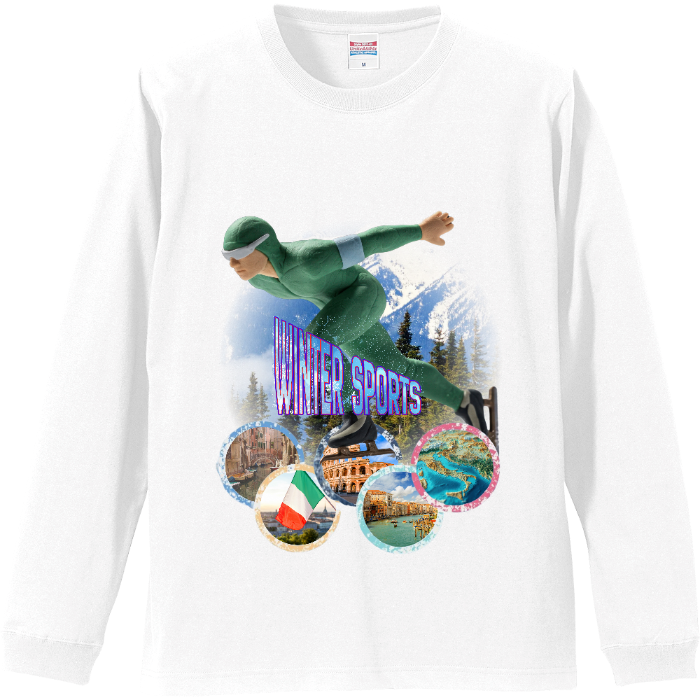 ウインタースポーツをテーマにしたデザインです。スピードスケートの迫力を特に表現しました。