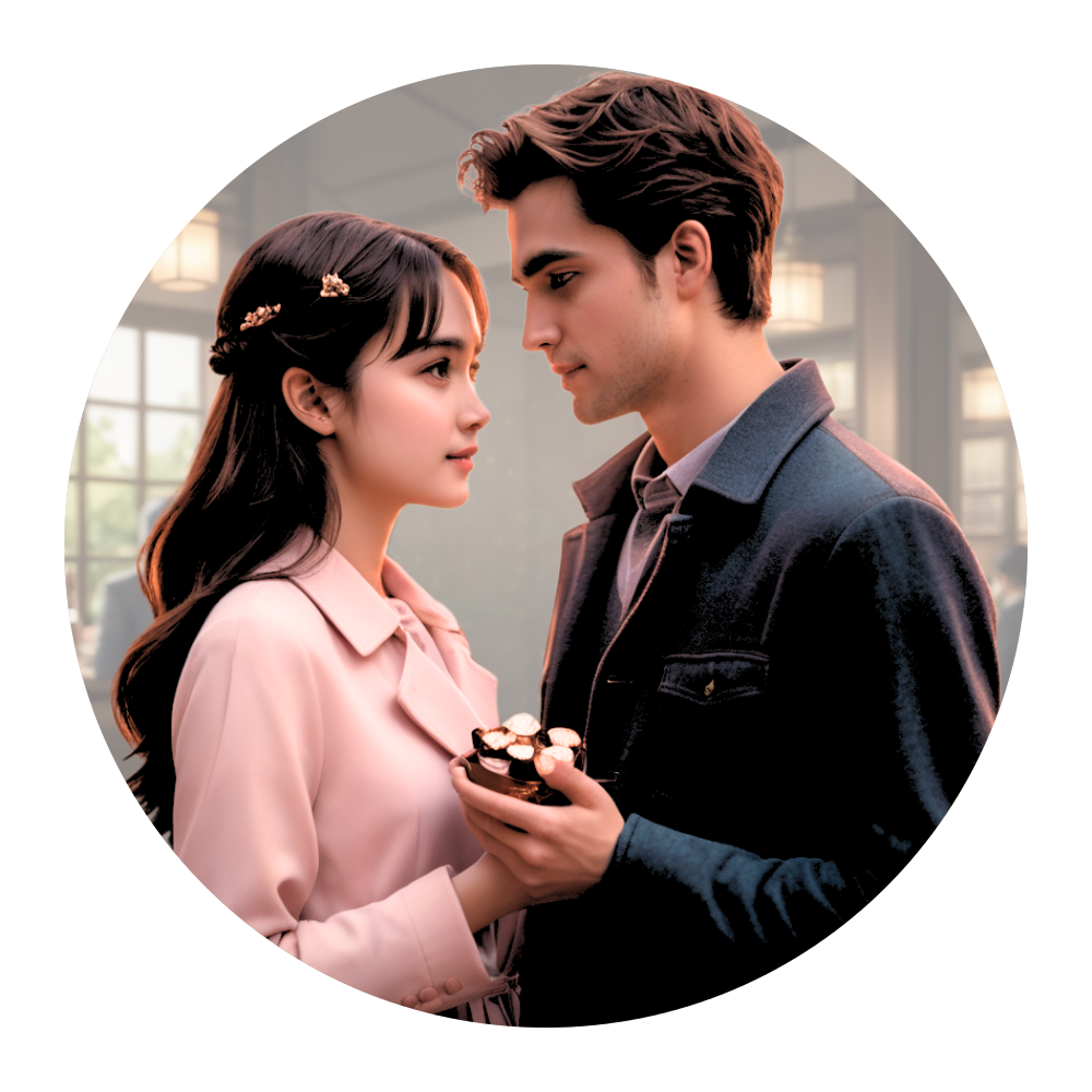 バレンタインデーにチョコレートを交換するカップルをイメージしたデザインです。
