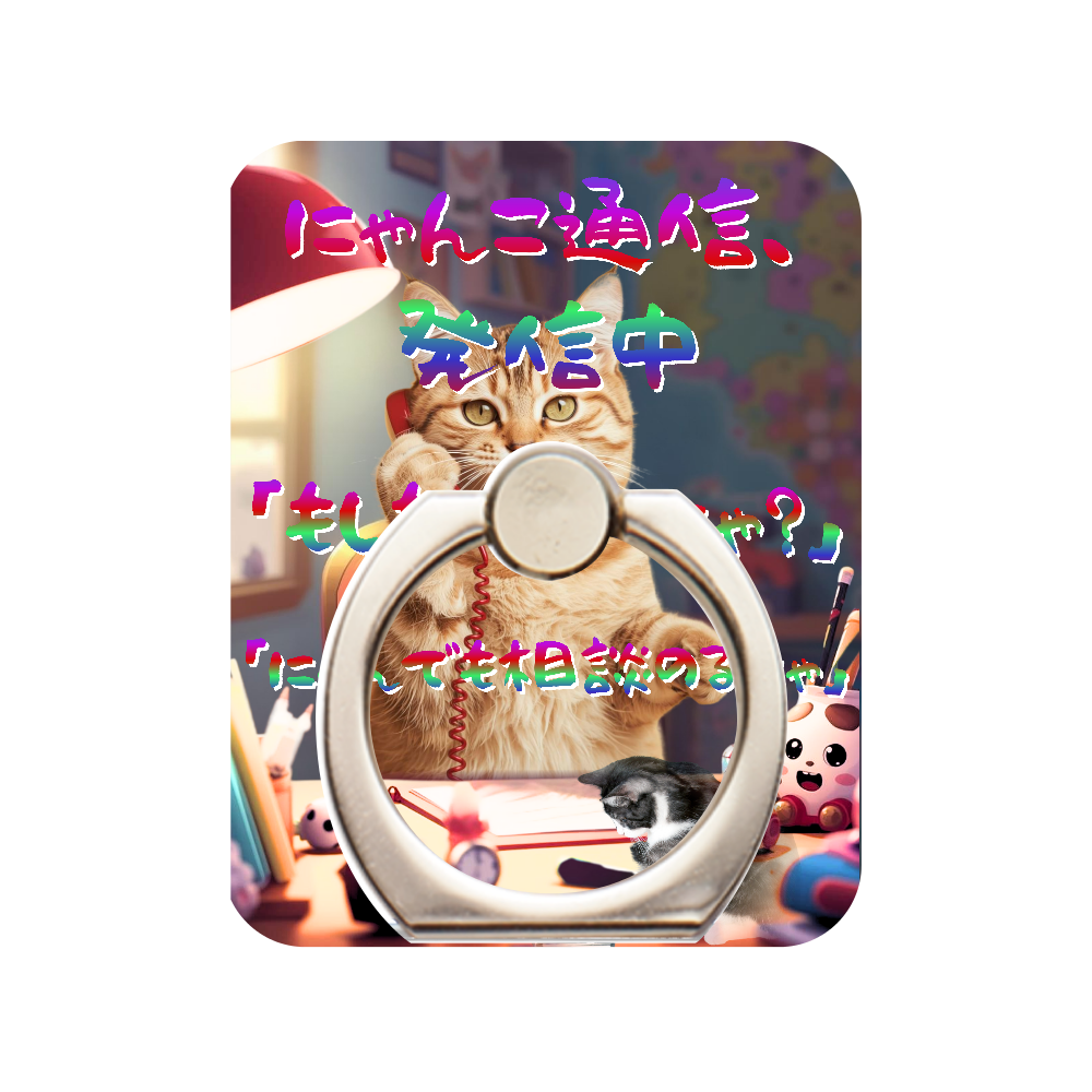 にゃんこ通信、猫が電話をかけている様子のパロディー画像です。