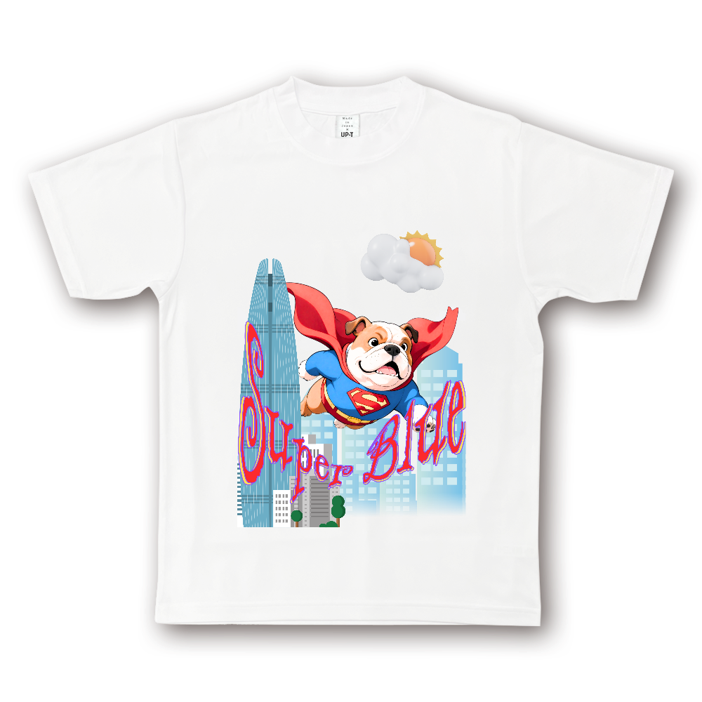 スーパーマンではなくスーパーブルドッグをイメージしたアニメスタイルデザインです。